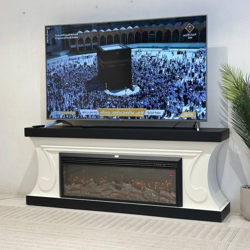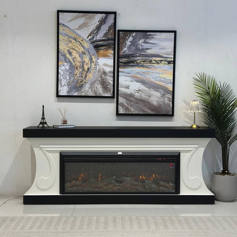 - دفاية كهربائية بتصميم عصري وأنيق تجمع بين اللونين الأبيض والأسود، تُضفي الدفء والأناقة على ديكور منزلك.